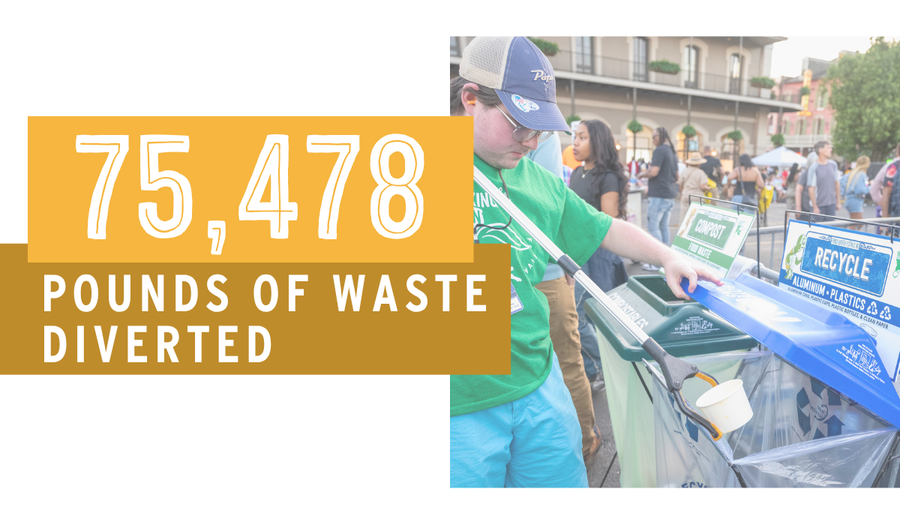 Through our Geauxing Green program, we diverted nearly 45% of total festival waste away from landfills in 2025. Responsible product sourcing, on-site waste sorting, and public education keep New Orleans’ streets and waterways cleaner. We also eliminated over 300 gallons of fossil fuel usage through sustainable operations, including electric golf carts and a solar-powered stage.